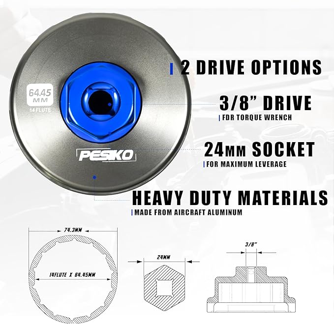 64mm Oil Filter Wrench and Drain Hose for Toyota, Lexus and Scion 2.0-5.7L Engine Cartridge Style Oil Filter Remover Tool
