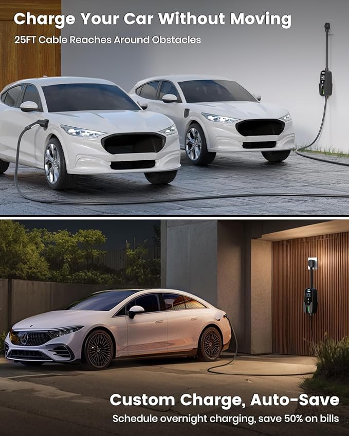 - Military-Grade Durability & Hassle-Free Warranty — The EVDANCE NEMA 14-30 EV Charger is built with certified 12AWG pure copper cables and UL 94 V-0 fireproof casing. This EV charger for home LEVEL 2 delivers safer charging — its silver-plated connectors boost conductivity while surviving 4,400-lb crush tests (think accidental car rolls). Backed by a 1-year full warranty and 24/7 U.S.-based support, charge worry-free through rain, dust, snow or daily grind.