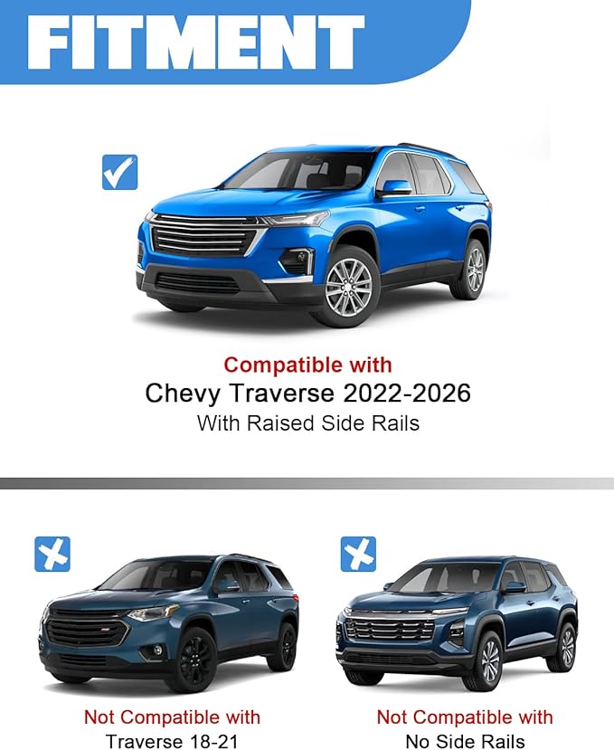 - 【Compatible Vehicle】Compatible with Chevy Chevrolet Traverse 2022 2023 2024 2025 2026 with Raised Side Rails.