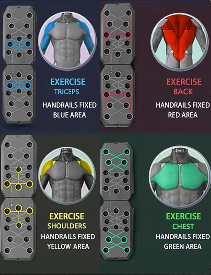 - 【Multifunctional&Efficient】This multifunctional push up bar has 30 holes on each side and up to 24 combinations,can accurately train all parts of your muscles through a variety of training methods, by following the specified position and using the colour coding system, you can ensure the correct posture, which is very important to maximize the effect of the workout and reduce the risk of injuries, it's perfect for both novices and professionals.