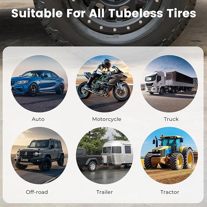 - UNIVERSAL FIT: Our tire puncture repair kit is suitable for all tubeless tires on cars, motorcycles, tractors, trucks, jeeps, SUVs, ATVs, trailers, and more