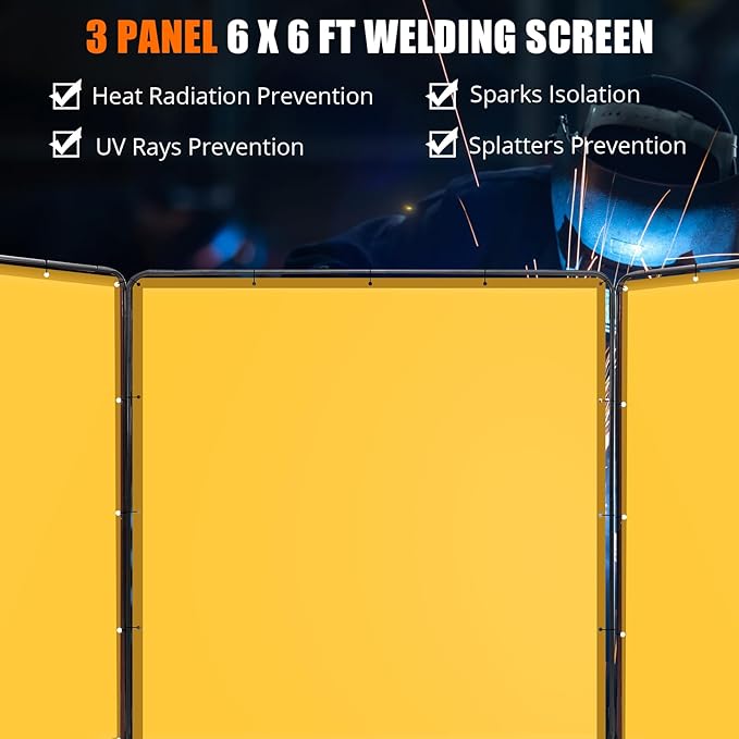 - Guard Your Safety: 3 Panel Welding screen with frame is made of 4 mm thick vinyl and measures 6x6 ft. Keep your welding area isolated, and protect workers, materials, and equipment from hazards of heat radiation, UV rays, sparks and spatters.