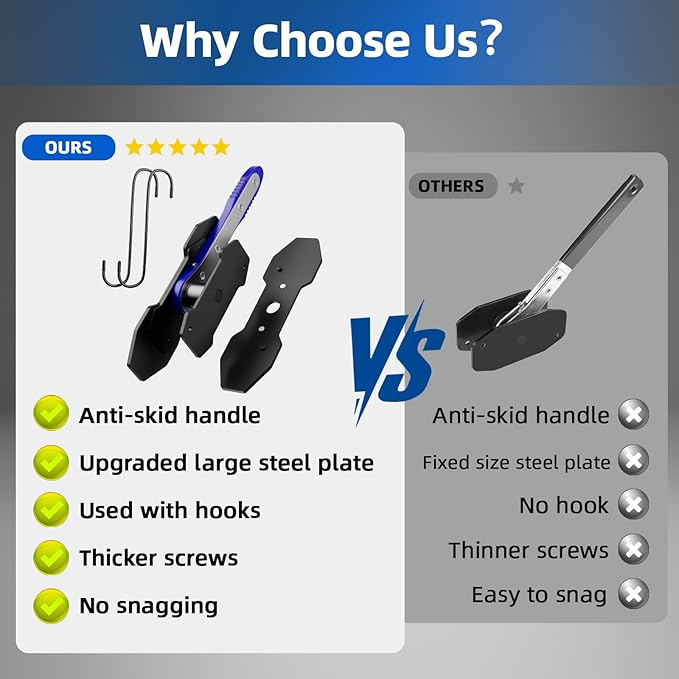 - 【Simple and Convenient Design】Our caliper compression tool includes: sturdy tool, 2 super strong magnetic steel plates with safety slots and 2 protective hooks. The steel plates fit into place in seconds! The hooks ensure safe braking. The ratchet has a simple flip switch that changes direction instantly. It is very intuitive and anyone can quickly master this brake caliper press tool.