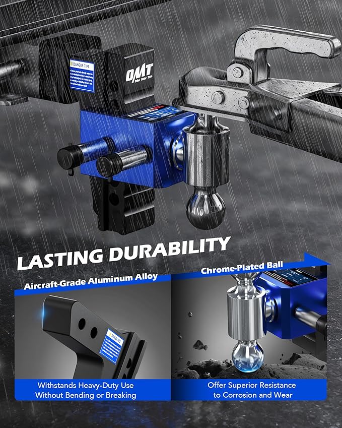 - Lightweight Yet Robust: Crafted from aircraft-grade aluminum alloy, this drop hitch resists bending under heavy loads. The chrome-plated balls protect against corrosion and wear for long-term use