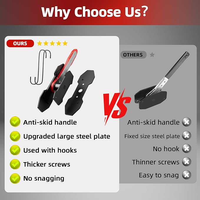 - 【Simple and Convenient Design】Our caliper compression tool includes: sturdy tool, 2 super strong magnetic steel plates with safety slots and 2 protective hooks. The steel plates fit into place in seconds! The hooks ensure safe braking. The ratchet has a simple flip switch that changes direction instantly. It is very intuitive and anyone can quickly master this brake caliper press tool.