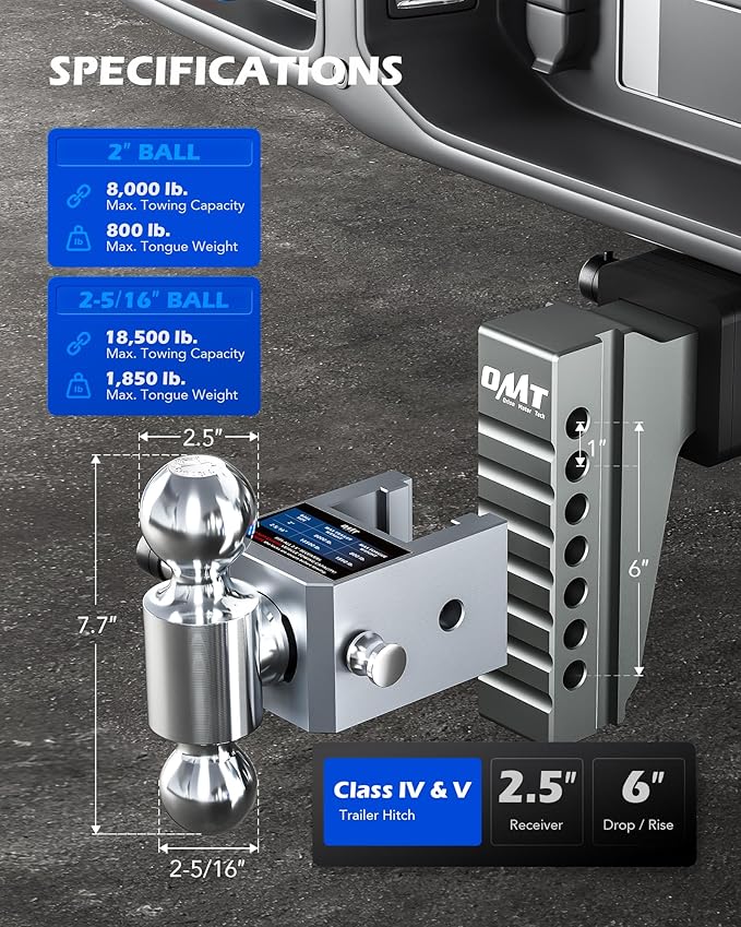 - Heavy-Duty Towing: Orion Motor Tech's adjustable trailer hitch features a dual-ball design, with the 2-5/16" ball rated for 18,500 lb. and the 2" ball for 8,000 lb., giving you the strength for any towing task