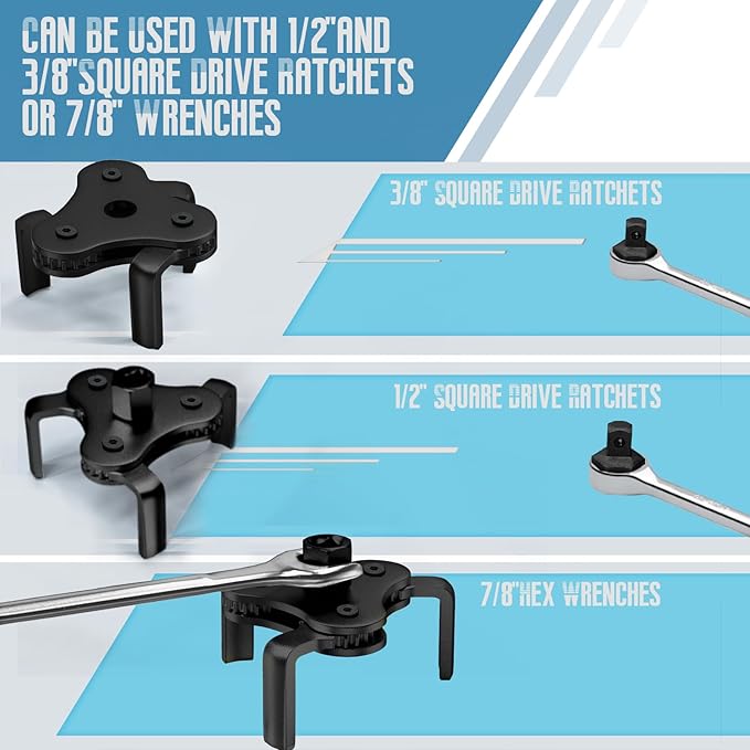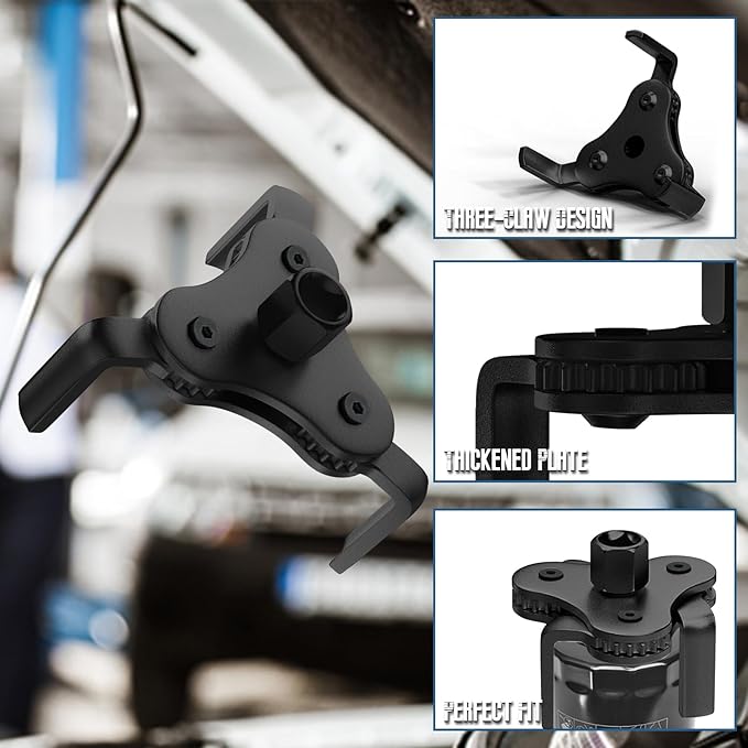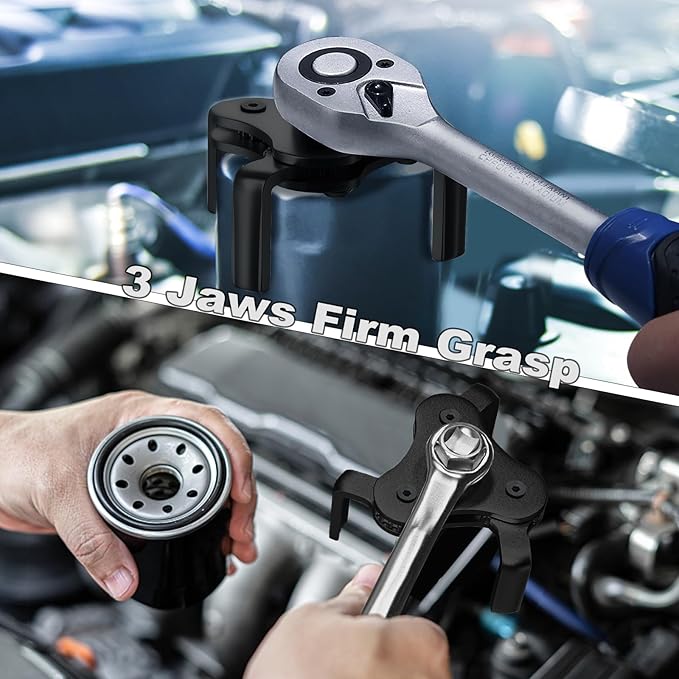 - Unique Design: The three-jaw design ensures a secure grip on the oil filter for a perfect fit, with a two-way design that can be operated clockwise or counterclockwise, and the greater the torque applied, the stronger its grip