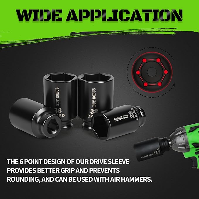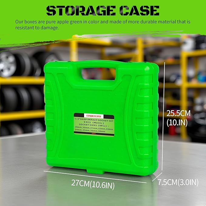 - Specification: This set includes 9 deep metric 1/2" square drive impact sockets in the following sizes: 29mm, 30mm, 31mm, 32mm, 33mm, 34mm, 35mm, 36mm, and 38mm