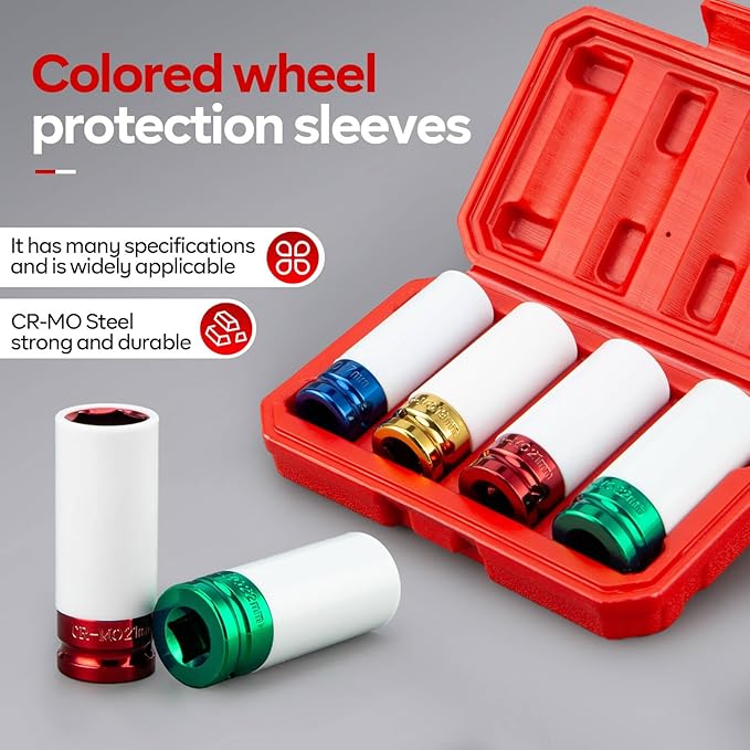 - This thin wall designed wheel nut socket set has 360° scratch-resistant protective sleeve and a non-marring insert perfectly protect your rims and lug nuts during assembly or disassembly