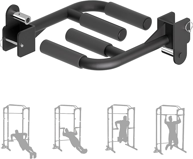 - 【QUICK & EASY SETUP】— Effortlessly install and adjust the dip bars by sliding the pin into the rack’s hole and securing it with a metal safety pin. Customize the height and position for your preferred exercises