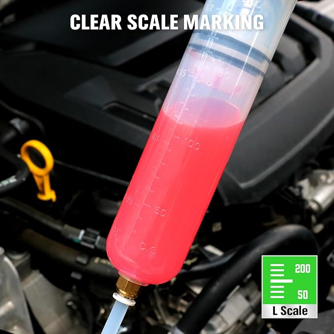 - PRECISION CONTROL - Transparent graduated body allows accurate fluid level monitoring, while the self-locking copper connector keeps tubes secure during oil extraction or fluid transfers