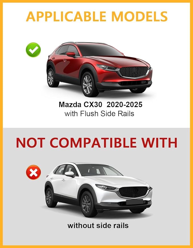 - 【Compatible Vehicle】Compatible with Mazda CX-30 CX30 2020 2021 2022 2023 2024 2025 2026 with flush side rails.This roof rack cross bars is specifically replacements for your vehicle, better than the universal ones.