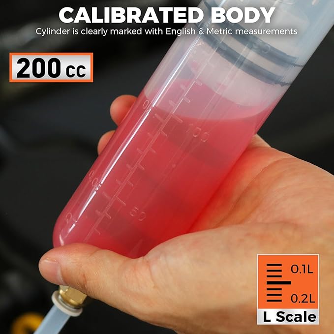 - CLEAR CAPACITY CONTROL : The clear syringe body of this oil syringe includes precise mL & oz. markings so you know exactly how much fluid you’re moving. A must-have fluid extractor pump for precise oil change or fluid transfer pump jobs.