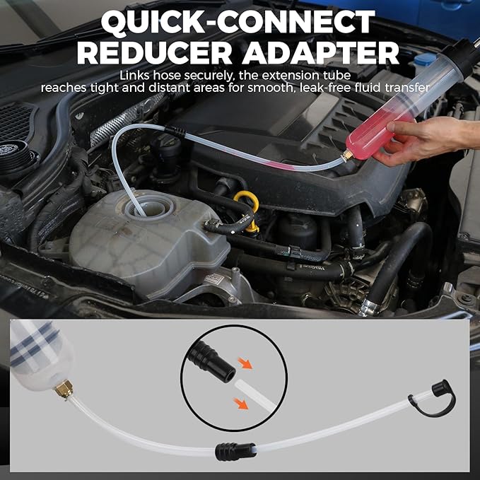 - WIDE DIY & PROFESSIONAL USE : This oil suction pump extractor is ideal for brake fluid, gear oil, transmission oil, and more. Perfect fluid extractor automotive tool for DIY car owners, pros, boat owners, or anyone needing a syringe with tube for quick oil tasks.