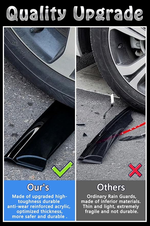 - these Tape-on rain guards Made of high quality,durable shatterproof material. have great performance in UV & scratch resistance test.