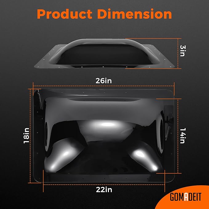 - ✅RV skylight replacement: dome size: 14 inches x 22 inches x 4 inches, flange size: 18 "x 26". Suitable for all standard 14 "x 22" sunroof openings for RVs, campers, travel trailers, RVs, and fifth wheel.