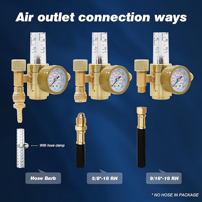 - Comprehensive Accessories: Package includes 1 argon gas regulator, 1 hose clamp, and mounting nuts