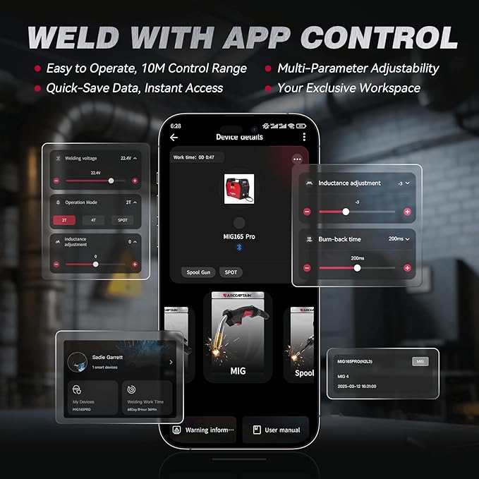 - APP CONTROL: A new design of this welder, you can adjust settings remotely via your APP, and save your favorite settings for future use.