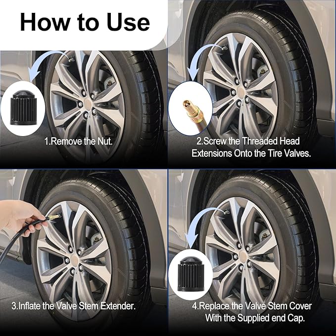 - Easy To Install: Simply Screw The Tire Valve Extender Onto The Tire Valve And Get Ready To Inflate!