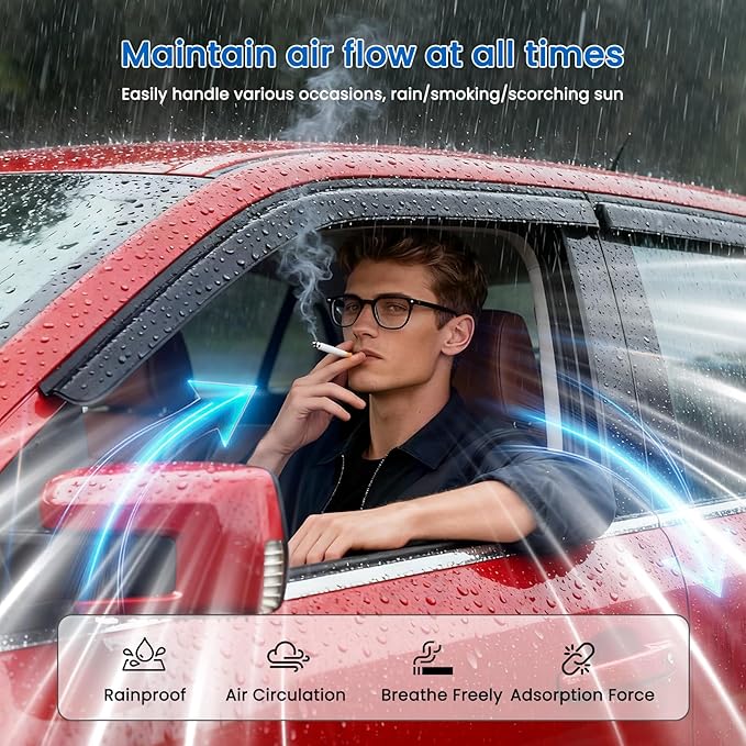 - 【Installation】-No need for any drilling or special tool. Our Window Visors with tape for extra-strong grip, no drilling is needed ,and no disturbed in the windows up and down. [NOTE: Avoid washing your car for the first 24 hours after installation.]