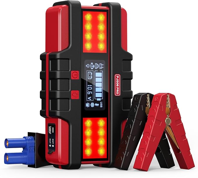 - 【Lifetime Support】 Includes: 1x 4000A Jump Starter, 1x Smart Jumper Cables, 1x USB-C Cable, 1x Premium EVA Case, 1x Manual. An ideal gift for your family or friends , allow easy storage in your glovebox, under the seat or trunk. Features exceptional 30-month standby time for reliable emergency readiness. Backed by 24-month hassle-free returns and lifetime technical support for worry-free ownership.
