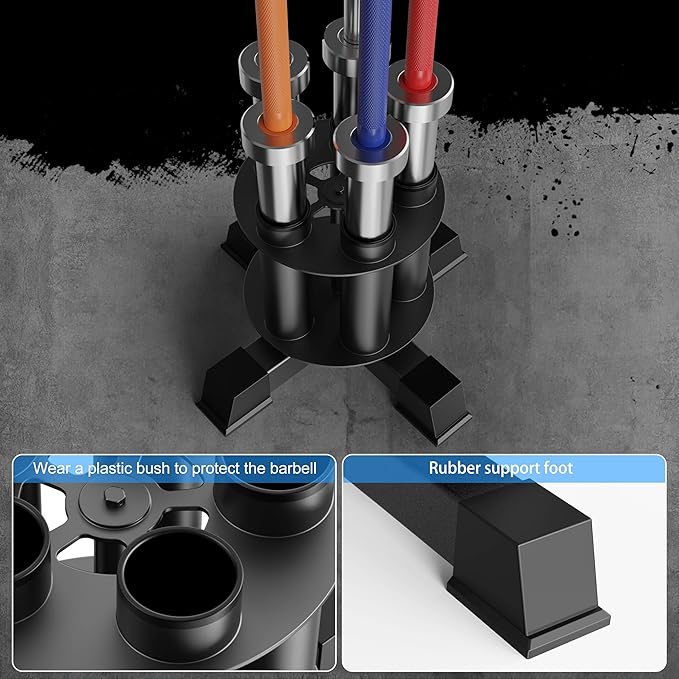 - Superior Protection Features: This barbell holder has great protection. Four rubber feet stop it from sliding on the floor, ensuring stability. Plastic sleeves in barbell sockets prevent scratches. In any gym, protecting barbells matters. It fits different spaces. Store barbells knowing they're safe from damage, extending their lifespan.