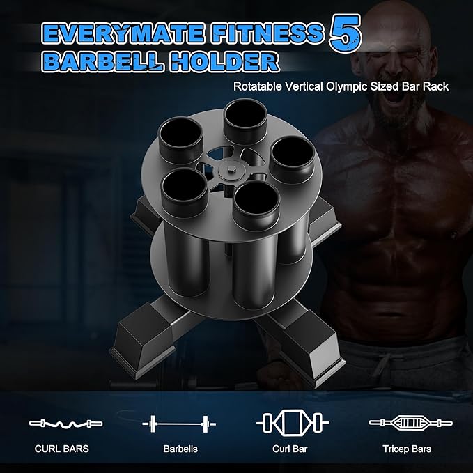 Vertical Barbell Holder : Rotatable Barbell Holder Floor Stand, Heavy Duty Barbell Rack Stand Fit 2-Inch Olympic Bars, Curl Bars, Triceps Bars Home Gym Organizer Barbell Storage