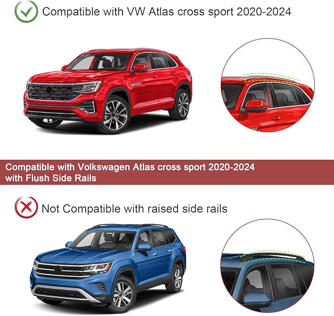- 【Attention & Fitment】KINGGERI roof rack crossbars are specifically replacements for Volkswagen Atlas Cross Sport 2020 2021 2022 2023 2024 2025 2026 with Flush Side Rails. Not for raised side rails. Please make sure it fits your vehicle before purchasing.