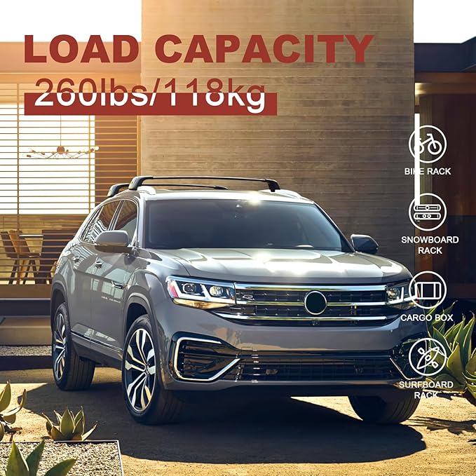 KINGGERI Lockable 260Lbs Roof Rack Cross Bars Compatible with Volkswagen VW Atlas Cross Sport 2020-2026 (with Flush Side Rails), Heavy Duty Aluminum Crossbars All Metal Accessories