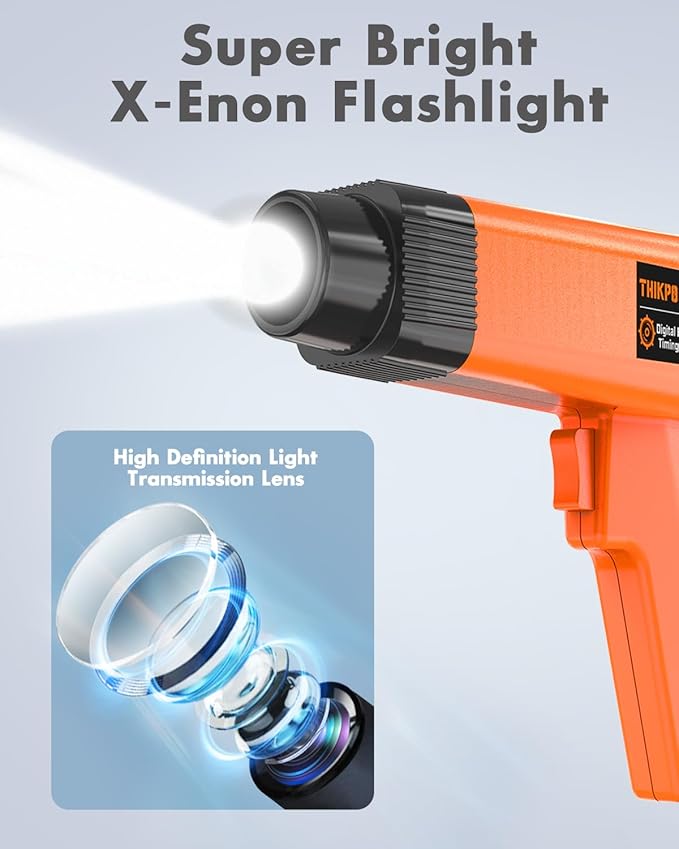 - Professional Digital Timing Light -- Ignition timing is critical to engine performance. This timing light allows for real-time visual inspection of ignition timing marks on the flywheel or crankshaft pulley, enabling precise calibration to prevent engine knocking, power loss, costly repairs, and premature engine failure caused by excessive advance or delay in ignition timing. No reliance on feel or sound, ideal for DIY enthusiasts and professionals seeking clarity and control.
