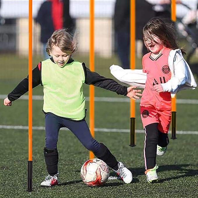 - 【PREMIUM MATERIALS】 Compared to other soccer sticks, our agility training poles are made of thickened plastic, which is not easy to break during long-term use and is suitable for outdoor training.The built-in stainless steel spring nails make it easy to insert into the ground, firmly rooted and will not rust.