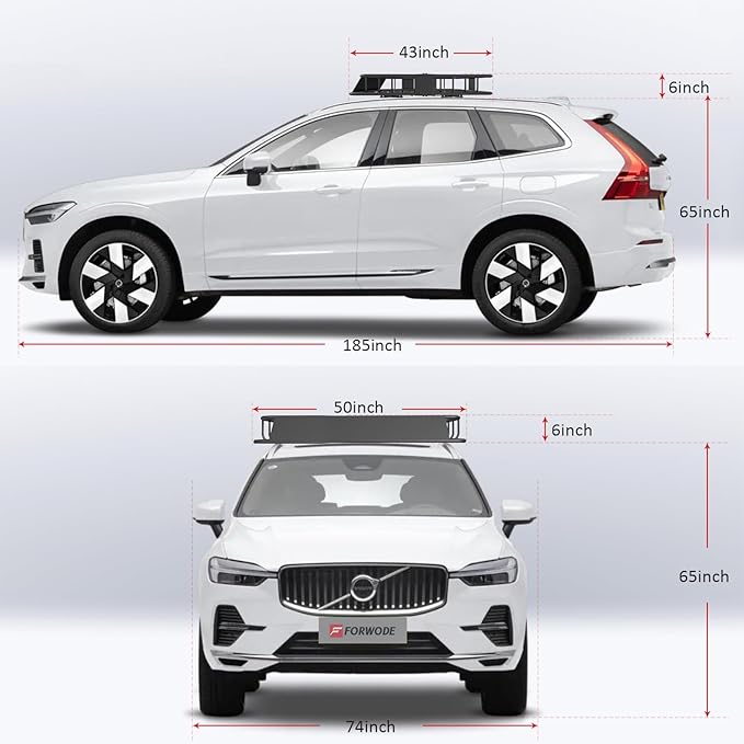 - Size and Load - Engineered to support 250lbs, this heavy - duty cargo carrier is built to handle all your family's adventure gear. Spacious 43"L x 50"W x 6"H platform offers superior loading capacity for the roof rack
