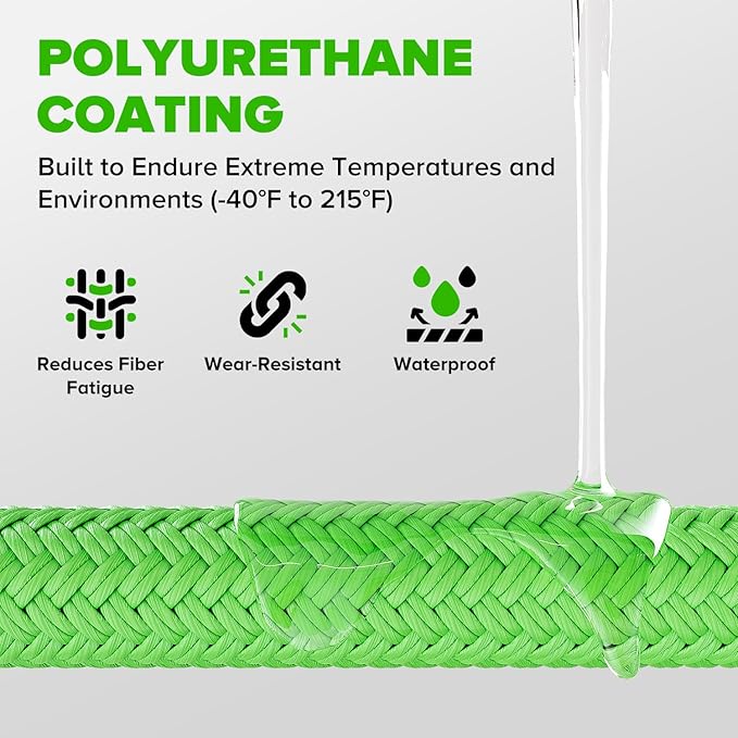 - Premium Material: This kinetic recovery rope is made from abrasion-resistant nylon 6 with a durable double-braided design and a 12-strand high-strength torque-balanced inner core, ensuring exceptional quality and reliability. It also features a urethane coating for UV, water, and abrasion protection, delivering top performance in any adventure