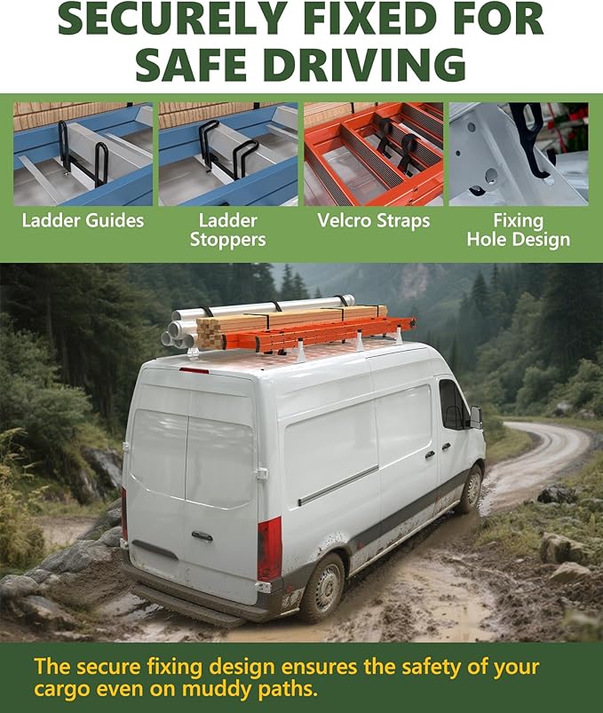 - Engineered for Security: Equipped with ladder guides, stoppers, and adjustable Velcro straps, the fit for sprinter van roof rack ensures your cargo stays secure on the move—no rattling, no shifting