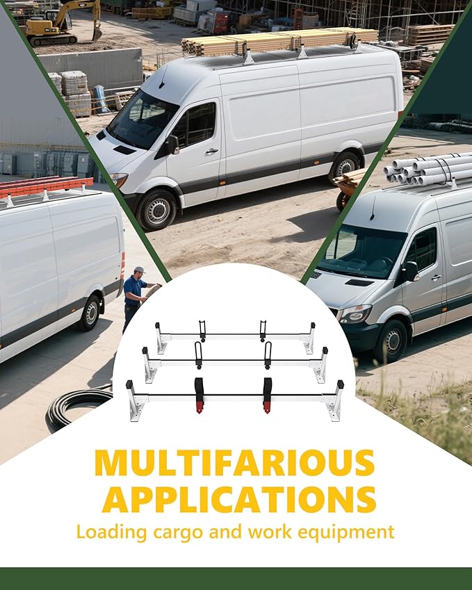 - Durable Alloy Steel Build: Made from rust-resistant powder-coated heavy duty alloy steel, the fit for sprinter ladder rack holds up in extreme weather and rugged work conditions without chipping or corroding