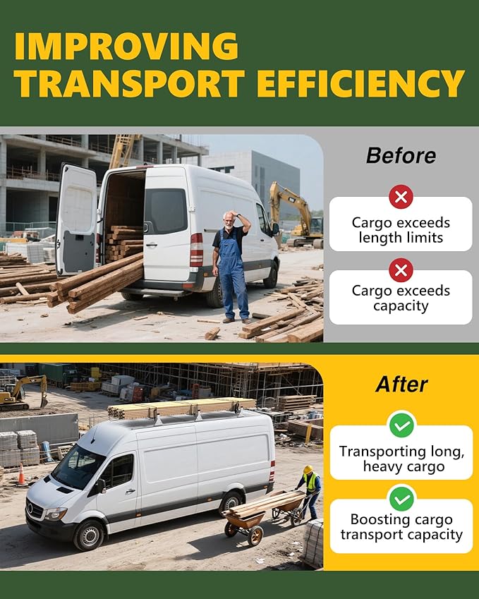 - Ideal for Contractors & Trades: A time-saving solution for electricians, roofers, HVAC pros, or movers. The fit for sprinter rack simplifies loading/unloading, maximizes roof storage, and improves workflow with every use