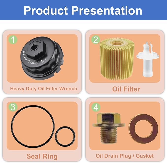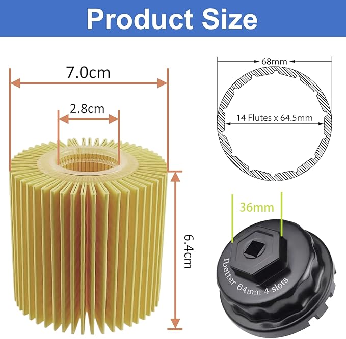 - Easy Installation: 64mm 14-flute wrench is specifically designed matches Toyota and Lexus filter caps .Corrosion-resistant gasket ensures leak-free seal, and drain plug prevents stripped threads.