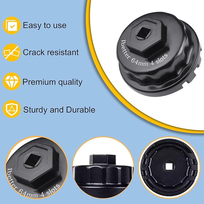 - Precision Engineered for Performance: Features high-efficiency filtration media that captures 99% of harmful particles (≥20 microns) while maintaining optimal oil flow. 64mm 14-flute wrench is made of high density alloy, ensuring a secure grip without damage.