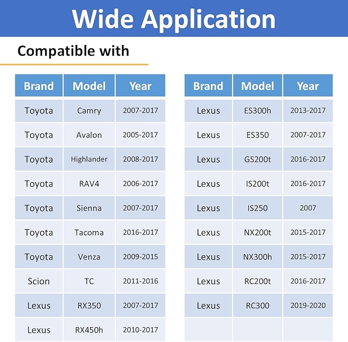 - Extensive Vehicle Compatibility: Fits 2007-2023 Toyota Camry (2.5L/3.5L), RAV4 (2.5L), Avalon (3.5L), Sienna (3.5L), and Lexus ES300h, ES 350, RX 350, RX 450h, IS 200t. Doesn’t fit the 1.8L engine oil filter cap.