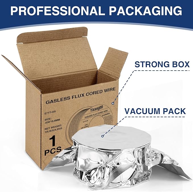 - PROFESSIONAL PACKAGING: The flux core welding wire is individually vacuum-packed, waterproof, moisture-proof and dust-proof to ensure the best welding performance and results. Each roll is 10 pounds to ensure continuous welding without frequent replacement