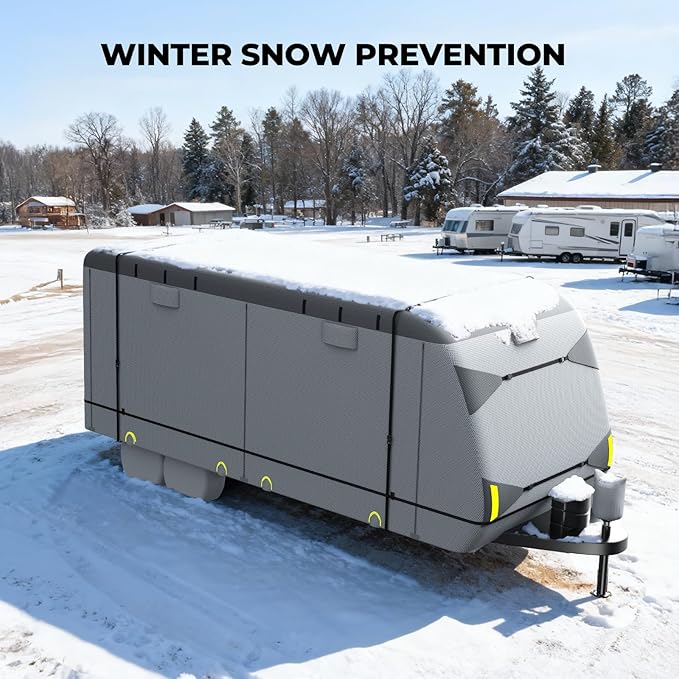 - Thickened 7-Layer Fabric - Made from 7-layer non-woven fabric, our true heavy duty rv cover with 4% anti-UV composite provide excellent protection against UV, snow, dust, and scratches. Plus, the outer layer features a water-repellent coating to make rain bead up and roll off effortlessly. A breathable membrane in the middle layer help rv cover expel moisture on sunny days to keep the interior dry