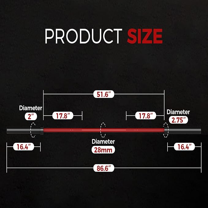 - 【Compact Design & Low-Friction Efficiency for Home Gyms】 With a space-saving 7-foot profile and low-friction bearings, this barbell delivers gym-quality performance in compact spaces. The streamlined design fits seamlessly into home setups, while the hard chrome sleeves ensure quick, quiet plate changes. Perfect for squats, overhead presses, or dynamic CrossFit routines, it maximizes efficiency without sacrificing stability.