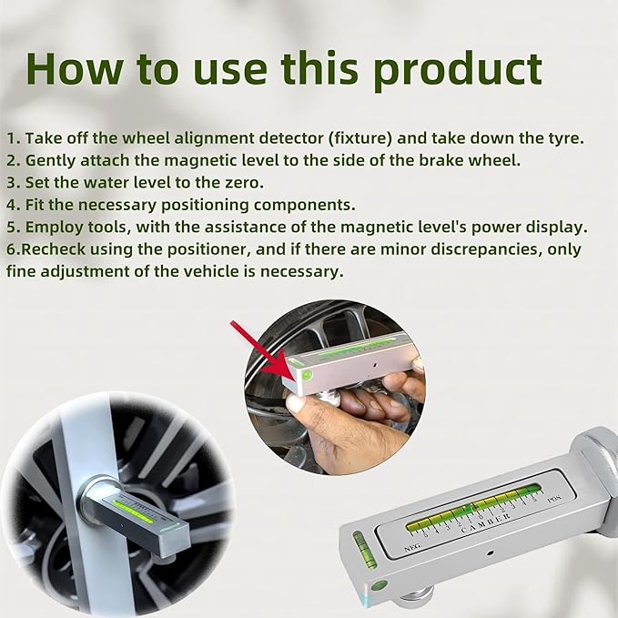 - Efficient and User-Friendly: This camber and caster alignment tool is simple to use and operate. Its compact horizontal bubbles allow for more precise measurements, helping you save both time and money by reducing trips to the repair shop