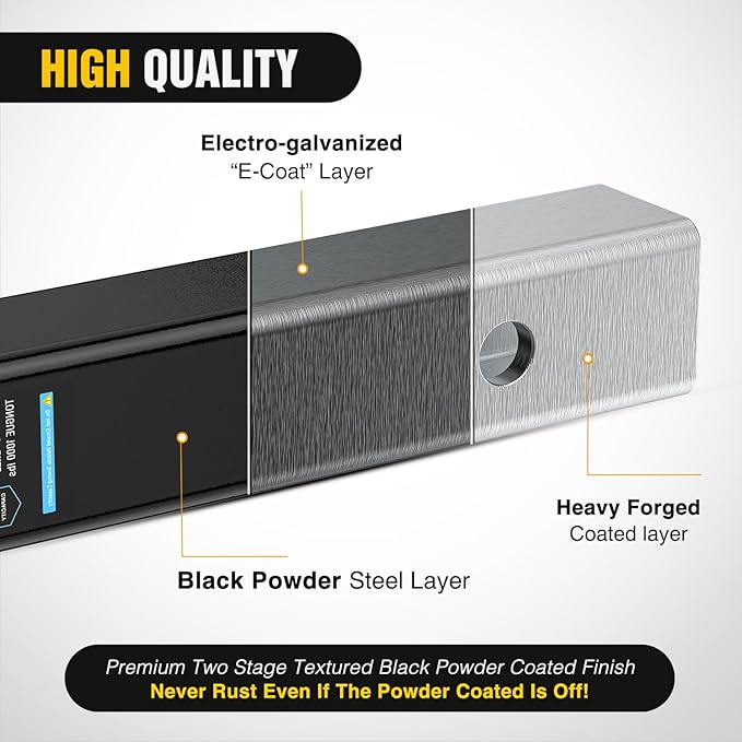 - Corrssion Resistance.Two stage finish using E-Coat pre-coating and high-grade textured black powder coating for long lasting corrosion resistance.