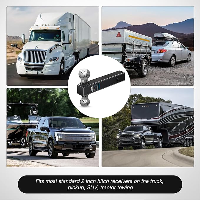 - Secure Towing.This two-ball hitch comes with welded 2 welded trailer balls, which is permanently and firmly fixed, giving you a safe and secure towing.