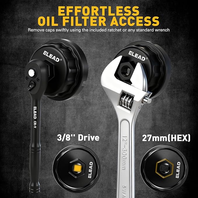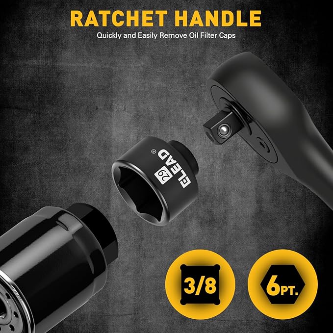 ELEAD 10-Piece Oil Filter Socket Wrench Set, 3/8" Drive Metric Cap Oil Filter Removal Tool, Low Profile Filters Socket Set with Ratchet Wrench Handle, Oil-change Kit Compatible with Toyota BMW Honda