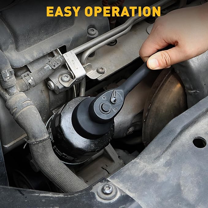 - COMPLETE KIT - Includes 7 metric sockets (24-38mm), 3/8" drive wrench handle, and 4 & 6 cylinder oil filter cap - everything needed for mess-free filter changes on import and domestic vehicles