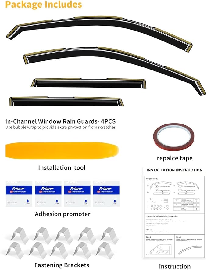 - 【EASY TO INSTALL】There is no drilling or no tools required. If there is a situation where the window cannot be raised due to jamming, please manually adjust the position of the rain guards and close the window for 72 hours to stabilize the position. Reduce the problem of unable to close windows.