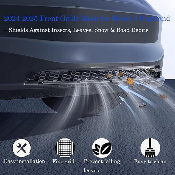 - 1.FLAWLESS FIT FOR TESLA MODEL 3: Engineered with advanced 3D scanning technology, this snap-on front grill mesh guarantees a perfect fit for the 2024-2025 Tesla Model 3, ensuring a factory-integrated appearance without unsightly gaps