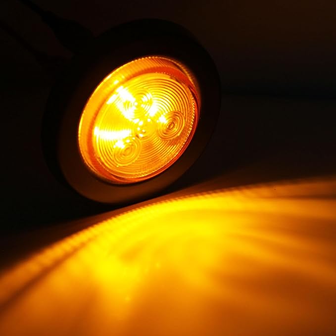 - [This kit includes]:16Pcs 2" round Amber 4 LED side marker lights, great replacement for incandescent lights; Each 2 inch side marker light is equipped with 4 high power LED beads to bring you ultra brightness. LED trailer light can be used as side marker light or clearance lights when properly installed; Accepts standard 2-prong plugs, Grommet and Pigtails are included for complete installation;